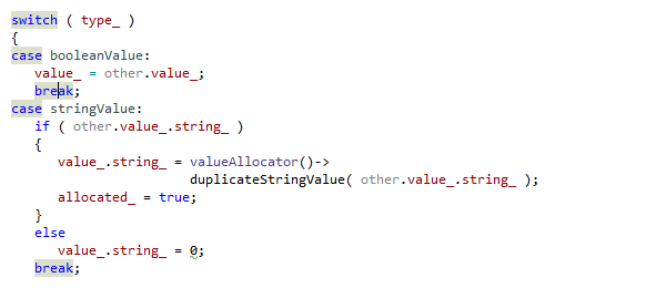 当您将脱字符号放置在函数、循环、或 switch 语句(return、throw 和 break,等等)的一个出口点上时,ReSharper C++ 现在会自动高亮显示其他所有函数或循环出口。