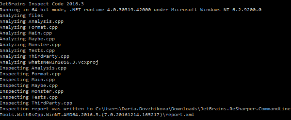 ReSharper C++ 代码检查还可以通过 InspectCode 进行,InspectCode 是一款免费的命令行工具,允许您在 Visual Studio 外部运行 ReSharper 检查。