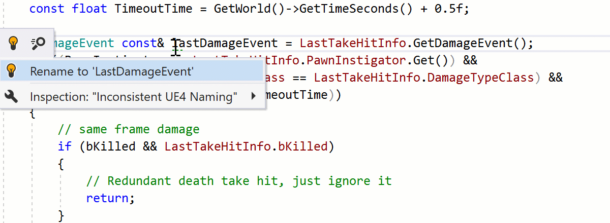 如果您正在基于 Unreal Engine 开发游戏,将受益于 ReSharper C++ 中的特定 Unreal Engine 支持。