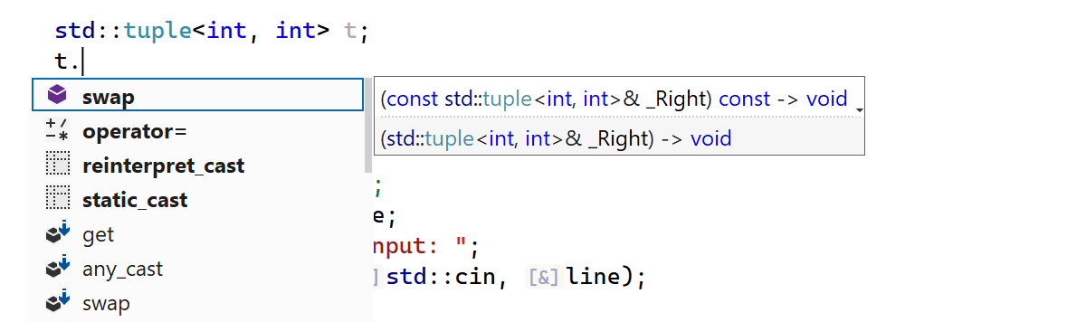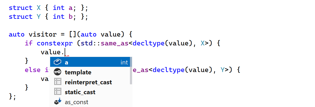 为了提供更有用的代码补全建议,ReSharper C++ 现在还从 requires 子句、if constexpr 和 SFINAE 中提取类型和值要求。