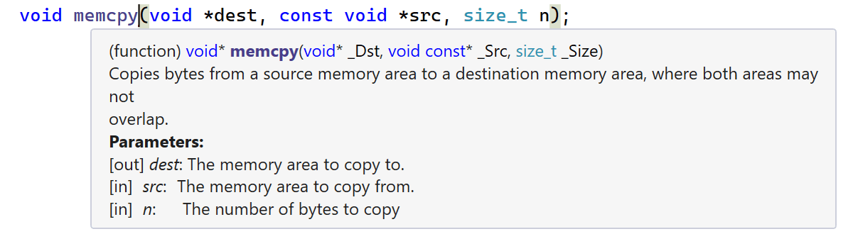 使用 Doxygen param 命令的 [in]、[in,out] 或 [out] 特性指定形参方向时,工具提示现在会从您的注释中获取它们。