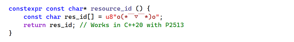 ReSharper C++ 2023.2 还实现了最近接受的 C++20 缺陷报告,该报告允许使用 UTF-8 字符串字面量初始化 char 或 unsigned char 字符数组。