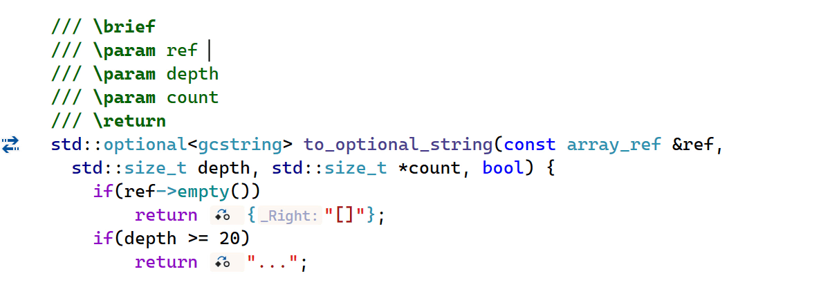 生成文档注释时,ReSharper C++ 现在将根据编辑器中的注释样式调整文档模板。 对于 /**,输入辅助将生成 /** */ 样式的注释,对于 ///,注释将为 /// 样式。