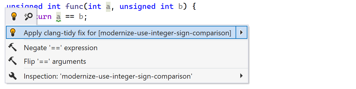 ReSharper C++ 2025.1 将捆绑的 Clang-Tidy 更新到 Clang 20,带来最新 LLVM 版本中的最新检查和增强。 此更新还改进了 ARM 平台支持,并包含用于 Windows ARM 的捆绑 Clang-Tidy 二进制文件。