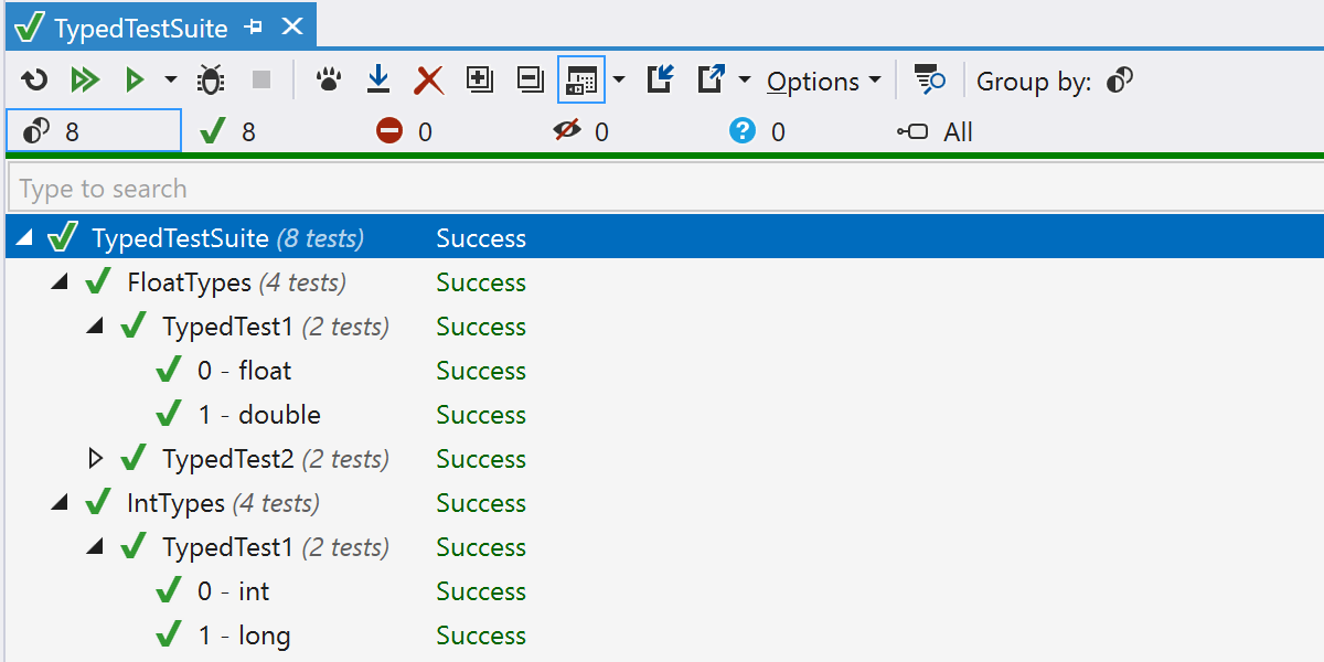 ReSharper C++ 2025.1 为 GoogleTest 支持带来多项更新。 运行值和类型参数化测试时,特定值和类型的测试用例现在分组到各自参数化测试下,使测试结果更加结构化和可读。