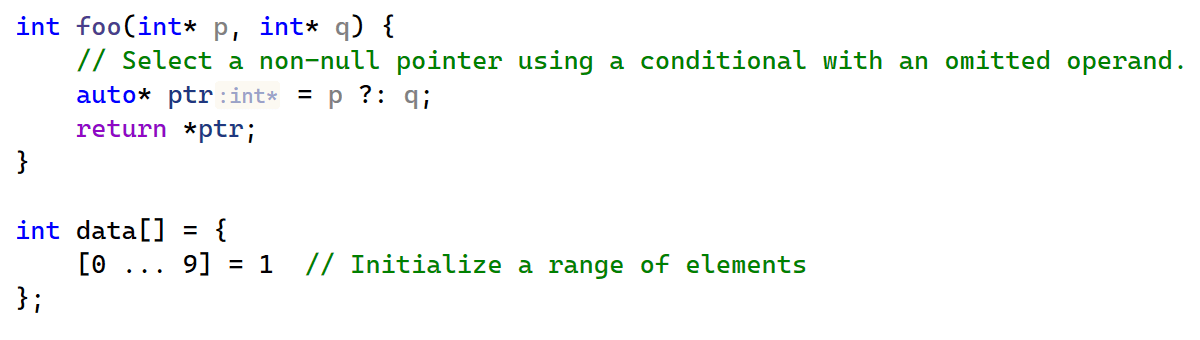 ReSharper C++ 2025.1 引入了对多种新的 GNU 语言扩展的支持,包括: