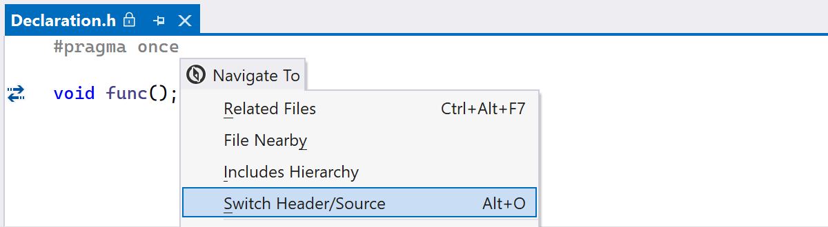 改进的 Switch Header/Source(切换头/源)操作现在不仅建议具有匹配名称的文件,还会建议包含当前文件中函数的声明或定义的文件,以便导航。