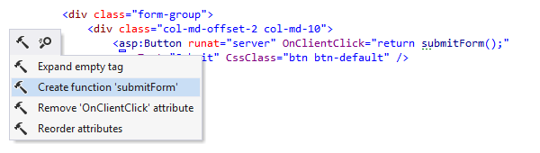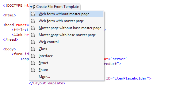 ReSharper 提供了大量的上下文操作来帮助您应对常见的 ASP.NET 标记场景。