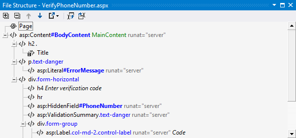 例如,如果您想概括了解当前打开的 aspx 文件中的标记项,请按 Ctrl+Alt+F,显示 File Structure 工具窗口。 您也可以使用文件结构派生,例如 Go to File Member、Go to Next/Previous Member和“Go to Containing Declaration”。