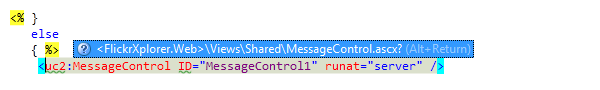 对于自动注册,ReSharper 会在您使用用户控件后尽快自动注册控件,并在您使用属于命名空间的类型后自动导入任何命名空间,就像在其他类型项目中的操作一样。