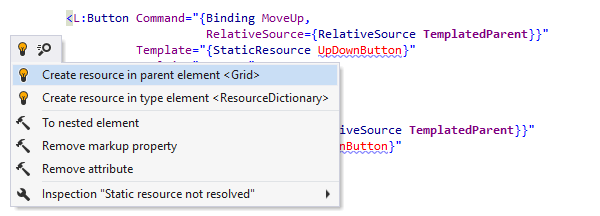Extract Resource和Inline Resource重构允许您将几乎任何属性赋值(包括标记扩展中的属性赋值)移动到资源,反之亦然 - 从资源中获取定义并将其拼接到元素中。