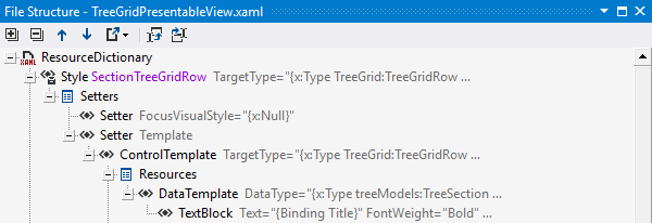 此外,就像代码文件一样,File Structure 窗口显示 XAML 文件的结构,使您可以快速导航到您正在查找的代码元素。