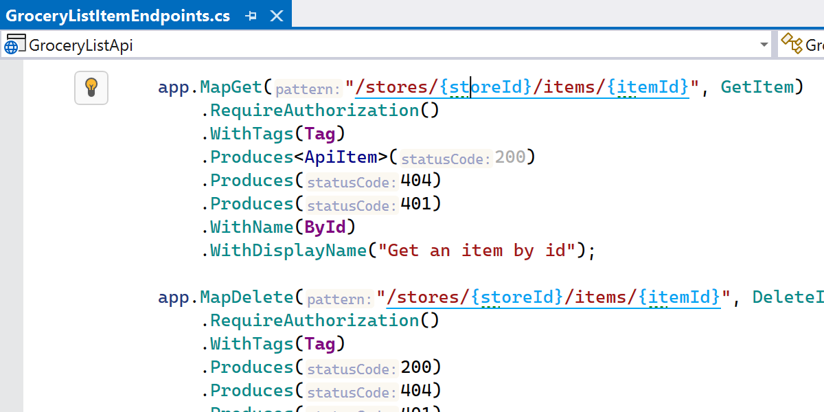 我们的端点支持现在适用于 ASP.NET Core 6 最小 API 和基于约定的路由。 包括导航、代码分析和代码补全。