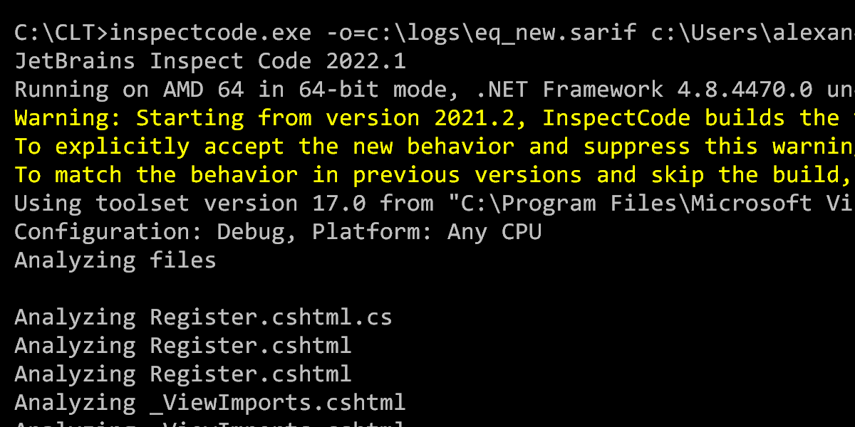 InspectCode 工具可以生成与 Static Analysis Results Interchange Format(SARIF,静态分析结果交换格式)兼容的输出文件。
