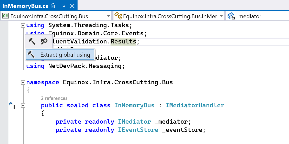 我们继续改进对 C# 10 的支持,特别是 Global Using。 我们已经实现了两个新重构,它们也可用作上下文操作。