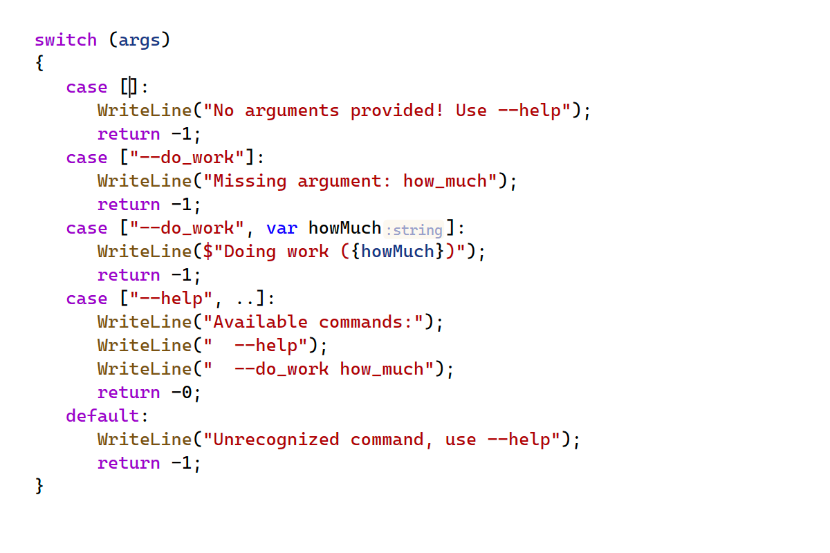 C# 11 进一步扩展了语言中可用的集合模式。 C# 将允许类列表结构(例如数组、字符串和类 List<T> 集合)的匹配。