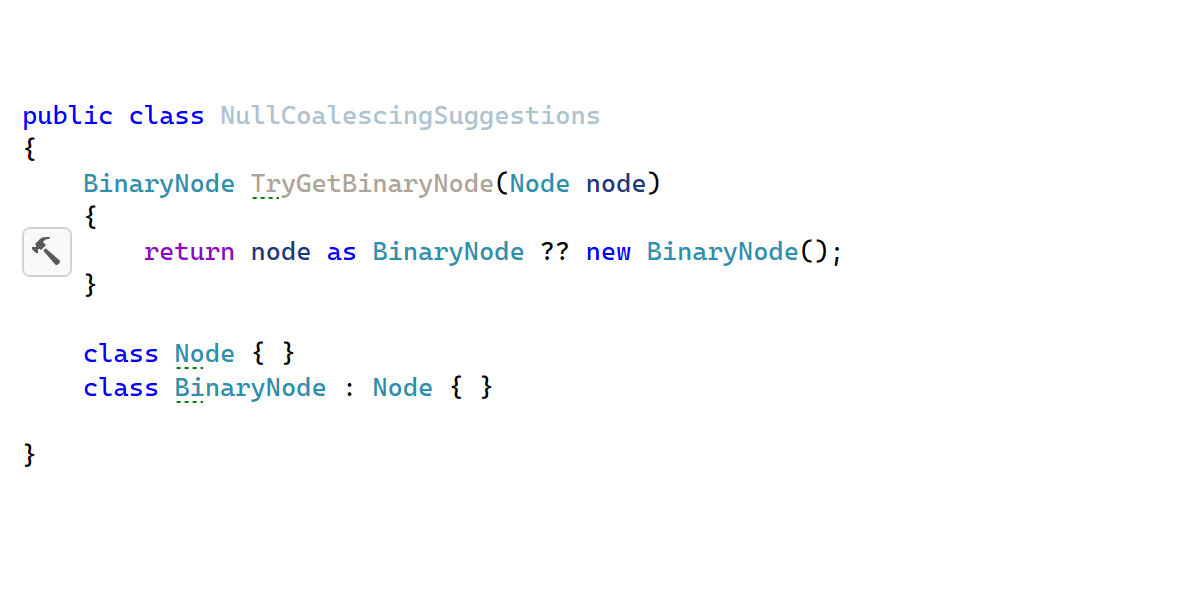 ReSharper 2022.2 现在能够将 ?: 表达式下的部分 is 模式替换为 ?? 表达式下更简洁的 as,有效消除了临时变量。