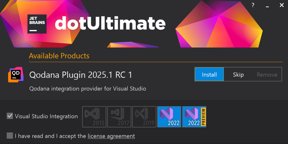 Qodana 团队代码质量工具利用 JetBrains 检查帮助团队运行检查与审核,并在他们的首选 CI/CD 管道中建立质量门。 现在,您可以通过 ReSharper 安装程序下载 Qodana Team Code Quality 扩展程序,将 Qodana Cloud 或自托管 Qodana 项目引入 Visual Studio。