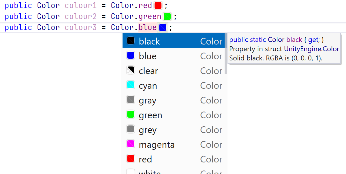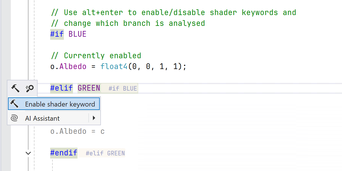 ReSharper 2025.1 附带了一个捆绑的 Unity 插件,支持所有主要的游戏开发工作流。 该插件提供了针对 Unity 事件函数和 API 的代码补全、带有 Unity 文档链接的工具提示摘要,以及检测常见问题的专用检查。 它包括对 ShaderLab 文件的支持,提供语法高亮、代码补全和错误检测。 该插件还会自动处理 .meta 文件,并检测 Unity 场景、预制件和资源中字段和方法的隐式使用。