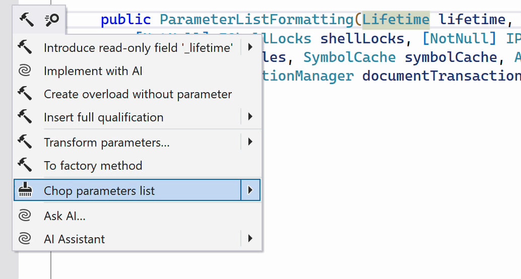 ReSharper 对 Transform Parameters(转换形参)重构进行了现代化改造,增加了对值元组、记录和异步场景的支持,有助于提高代码灵活性和可维护性。