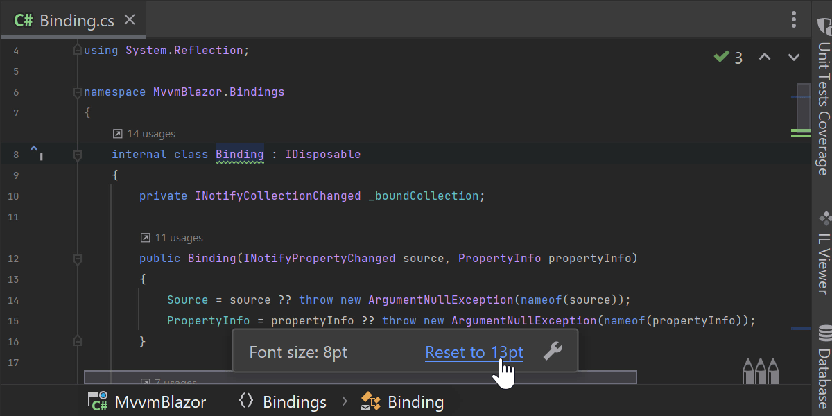 我们添加了新的 Visual Studio 2022 按键映射,它解决了当前 Visual Studio 按键映射与 Visual Studio IDE 按键映射(例如 Alt+向上箭头/向下箭头)之间的所有快捷键差异,支持后者的快捷键。 这一改动适合习惯于 2022 版之前没有 ReSharper 的 Visual Studio 的用户。