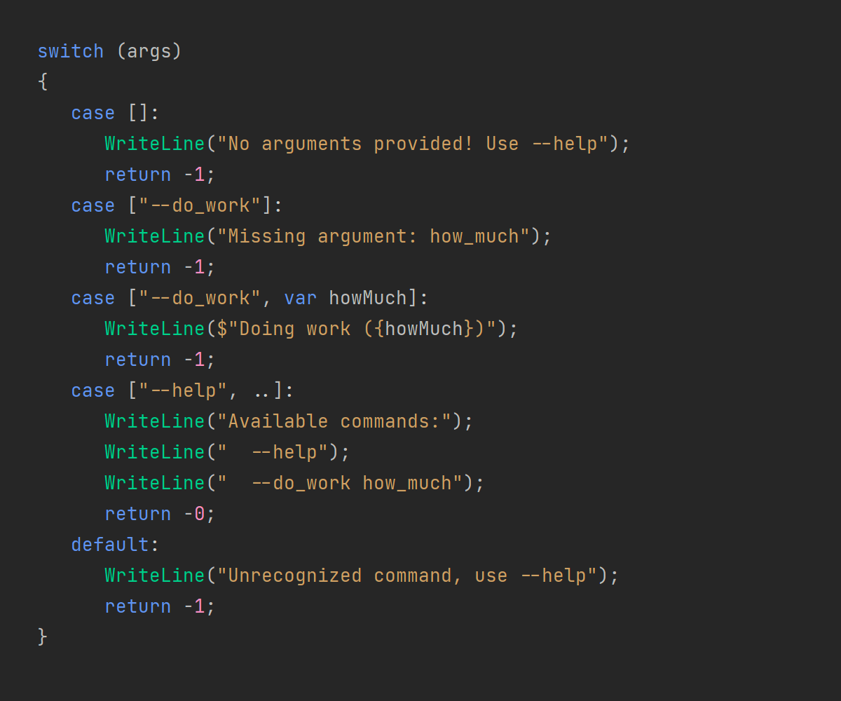 C# 11 进一步扩展了语言中可用的集合模式。 C# 将允许类列表结构(例如数组、字符串和类 List<T> 集合)的匹配。