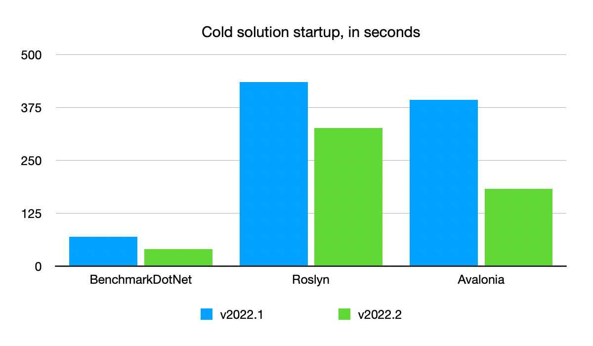 我们优化了首次项目加载阶段,让 Rider 仅获取还原 NuGet 软件包所需的信息。 内部指标显示,新实现提升了约 40% 的提速。