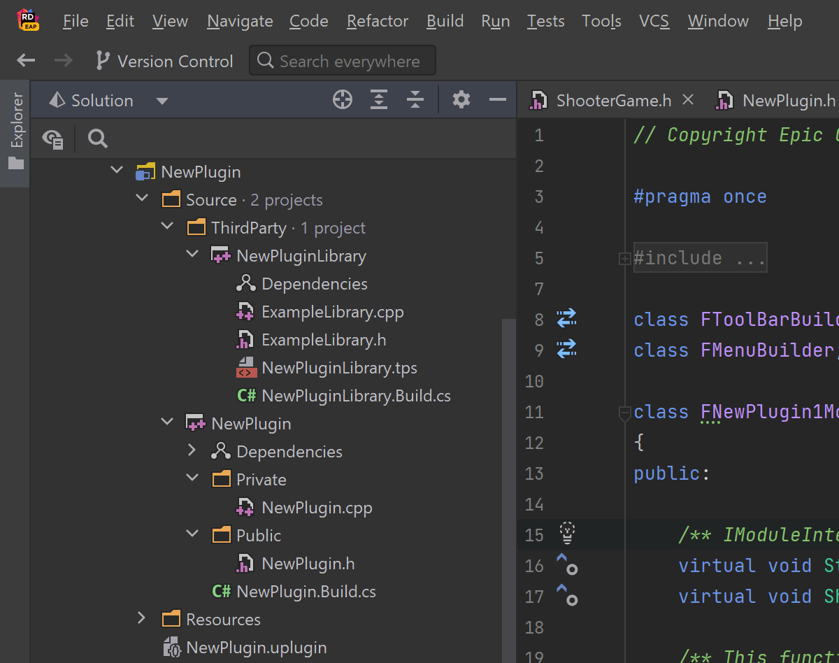 如果您在 Unreal Editor 中尝试过创建新插件,那么您对这个操作一定不会陌生。 现在,您可以直接从 Rider 创建不同类型的插件,使用 Add | New Unreal Plugin(添加 | 新增 Unreal 插件)操作即可为新插件生成所有必要的文件。