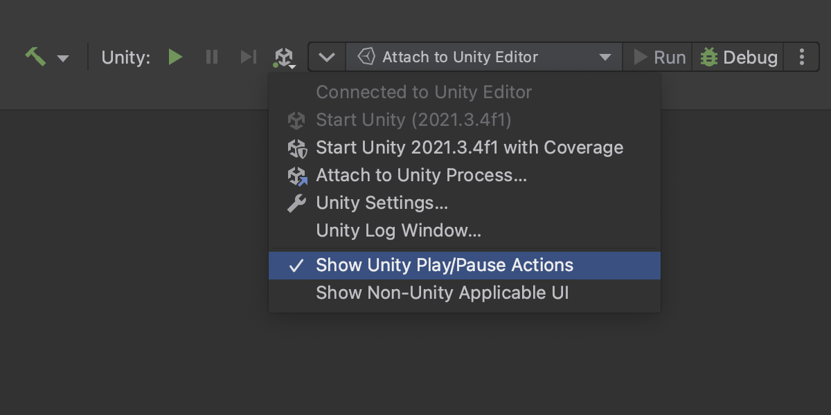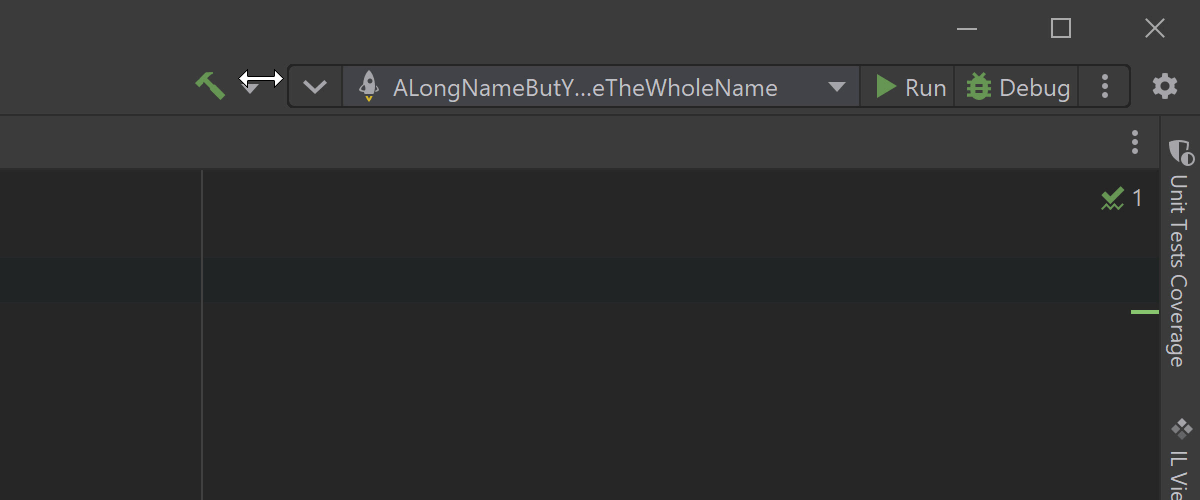 为了回应社区反馈,主工具栏上 Run/Debug(运行/调试)微件的宽度已可更改。 如果工具栏上有空间扩展 Run/Debug(运行/调试)微件,您可以拖动微件图标的左角并调整其大小。 因此,您可以根据需要为微件创建更多空间。