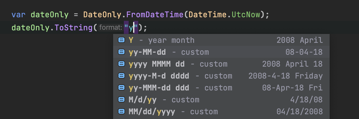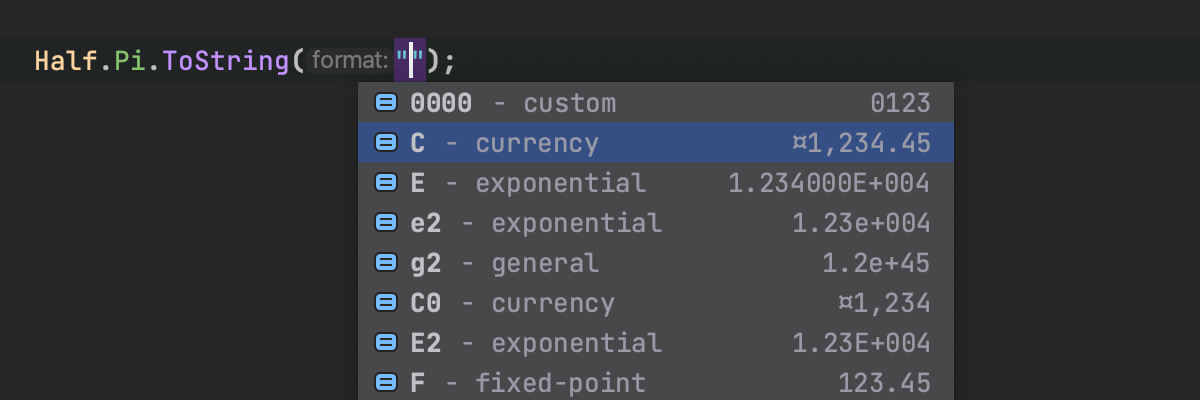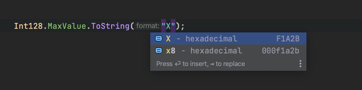 通过在 .NET 7 中添加 Int128 和 UInt128 数字类型,我们更新了代码补全格式说明符建议。