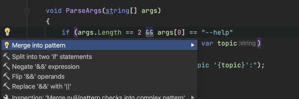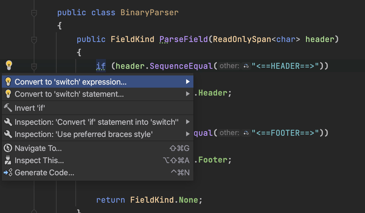 Rider 现在建议使用 is 或 switch 表达式,而不是大量的 if 语句。