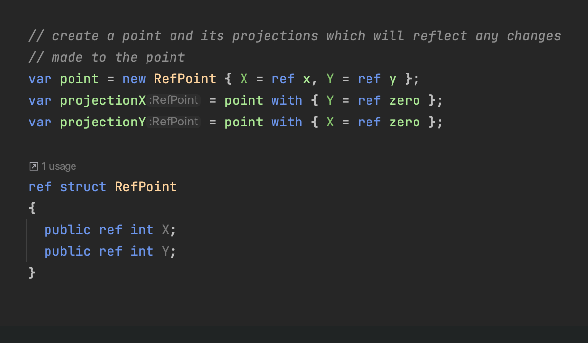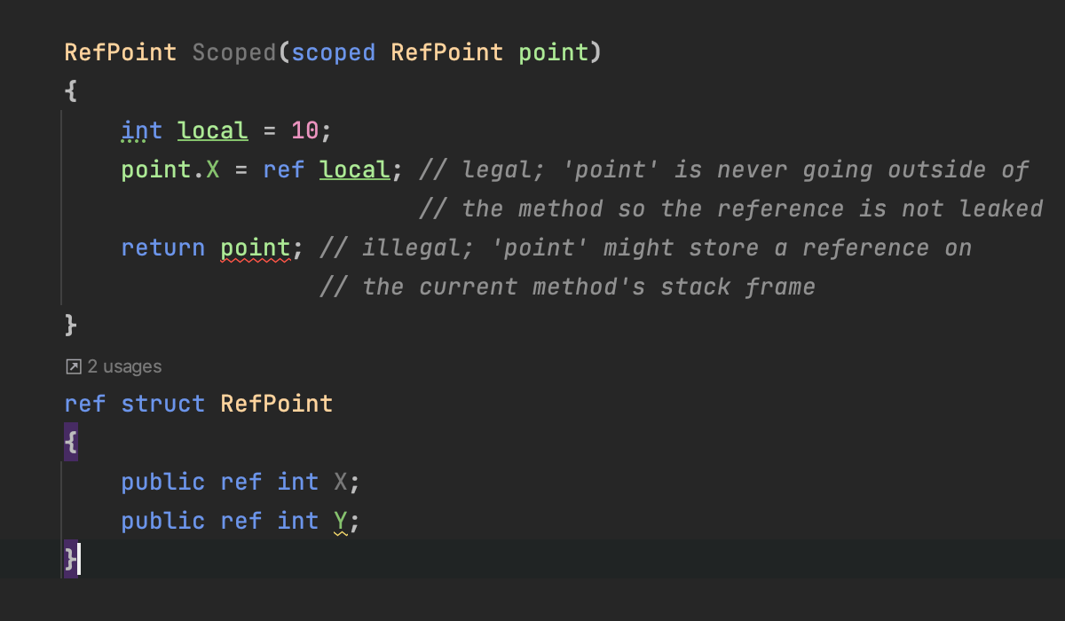 从 C#11 开始,您可以在 ref 结构中声明 ref 字段。 Rider 支持此新语法规则,提供所有编译器错误和警告,在代码补全中显示 ref 关键字,并允许在构造函数中初始化此类字段。