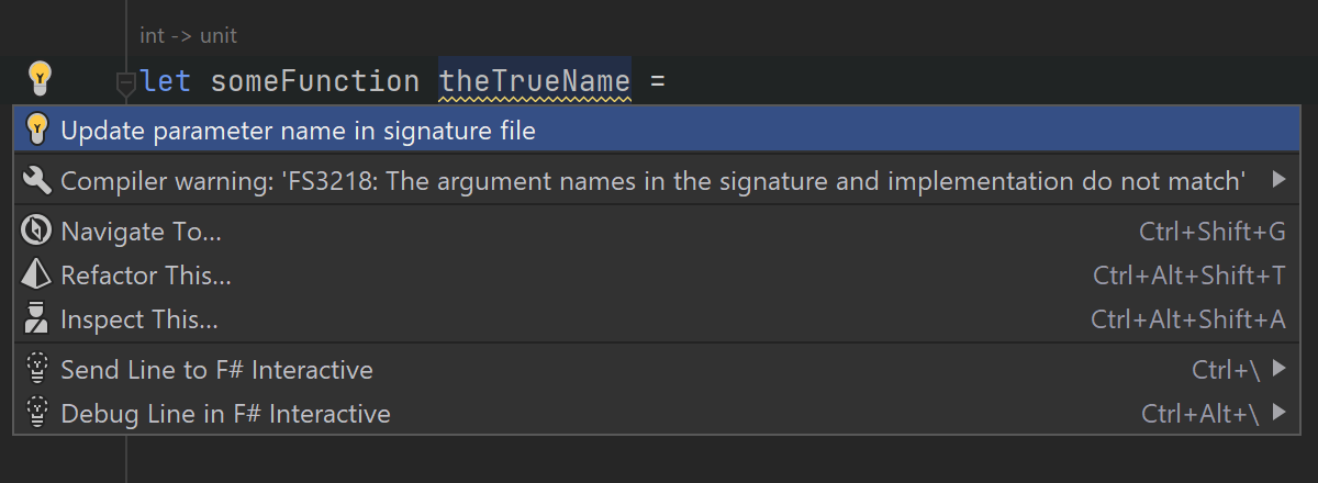 我们添加了新的快速修复 Update parameter name(更新形参名称)和 Update record field(更新记录字段),用于更新签名文件,使它们在更改代码时更易使用。 非常感谢 Florian Verdonck 的实现!