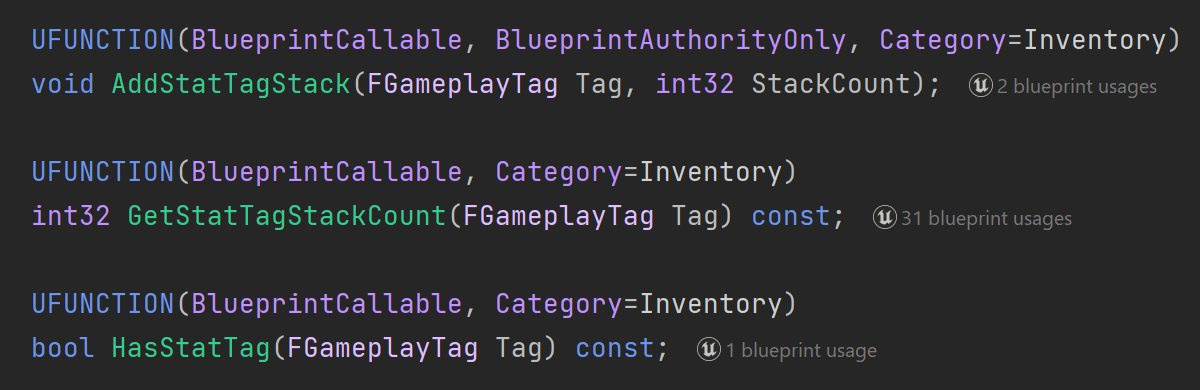 Rider 2022.3 引入了新的特定于蓝图的 Code Vision 指标。 您现在可以快速检查有多少蓝图使用 BlueprintCallable 函数,并从 Code Vision 上下文菜单中获取所有用法的列表。