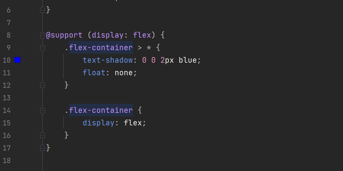 IDE 现在可以理解 @supports at 规则,它将语句块与 @supports 条件相关联。 此构建还包括对 视口单位、范围媒体查询、容器查询、@layer (级联层) 和 颜色修改函数 的支持。