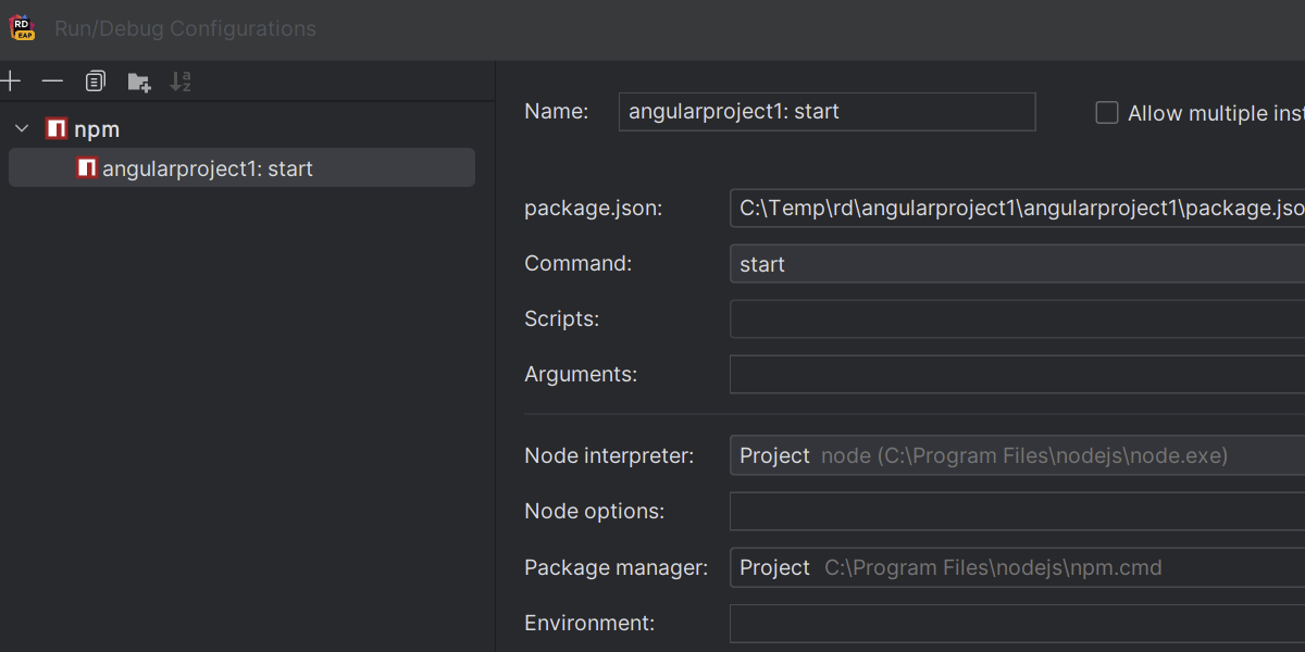 Rider 现在可为解决方案 (.sln) 引用的 JavaScript 和 TypeScript Web 项目 (.esproj) 自动生成 npm 运行配置。
