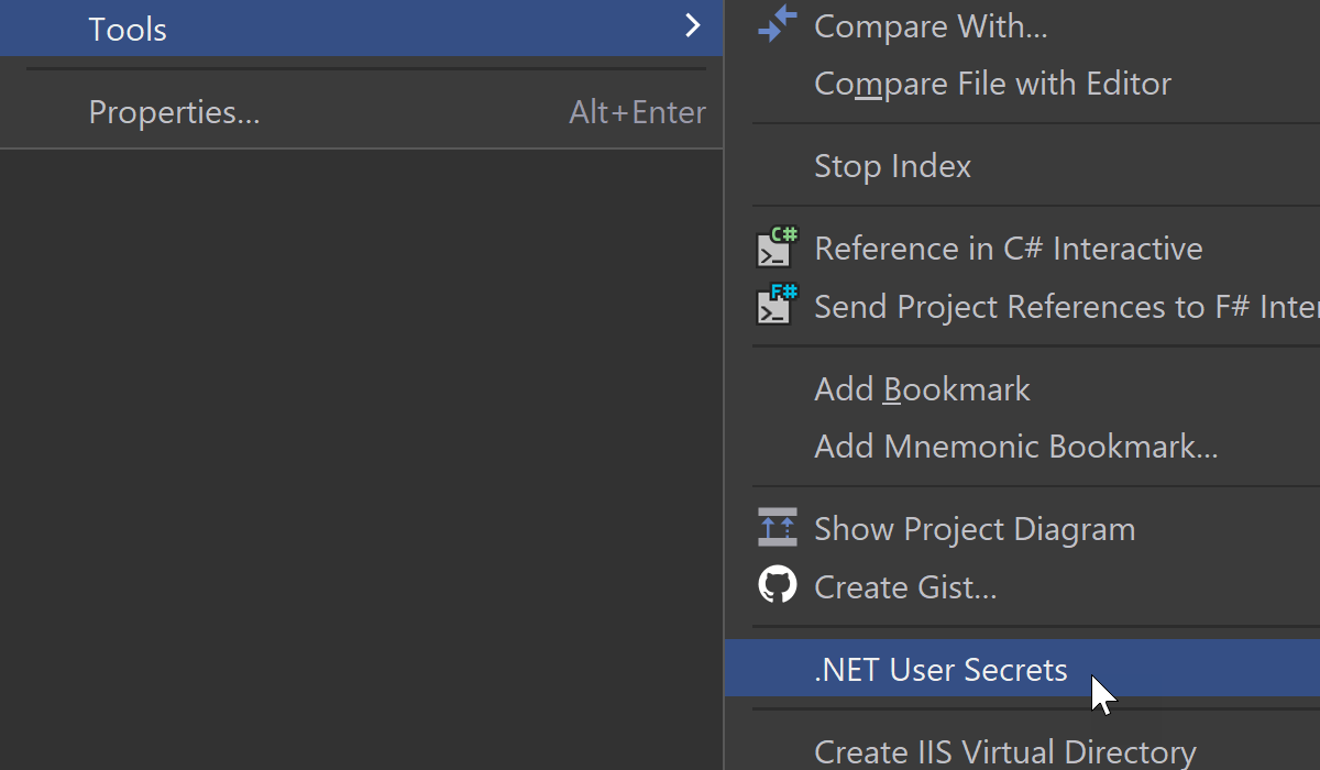 为 ASP.NET 项目添加了 .NET User Secrets(.NET 用户密钥)操作。