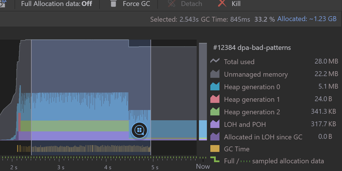 2023.2 之前,您在 Rider 中使用 dotMemory 时只能进行内存分配分析。 在 2023.2 中,您可以收集内存快照并在 Rider 中分析,就像在独立版本的 dotMemory 中一样。