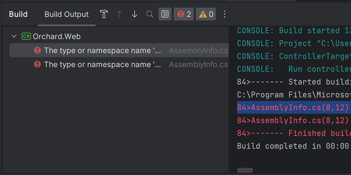 对于 Rider 2023.2,我们从性能和 UX/UI 两方面重做了 Build(构建)工具窗口。 构建输出结果现在将在左侧显示为事件树,在右侧显示为日志。 输出将以“延迟”方式加载,只加载和显示您选择从事件树中查看的构建详细信息,这使输出对 CPU 更加友好并更易于导航。