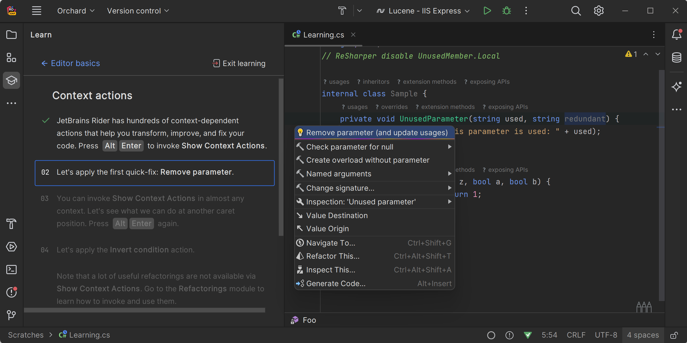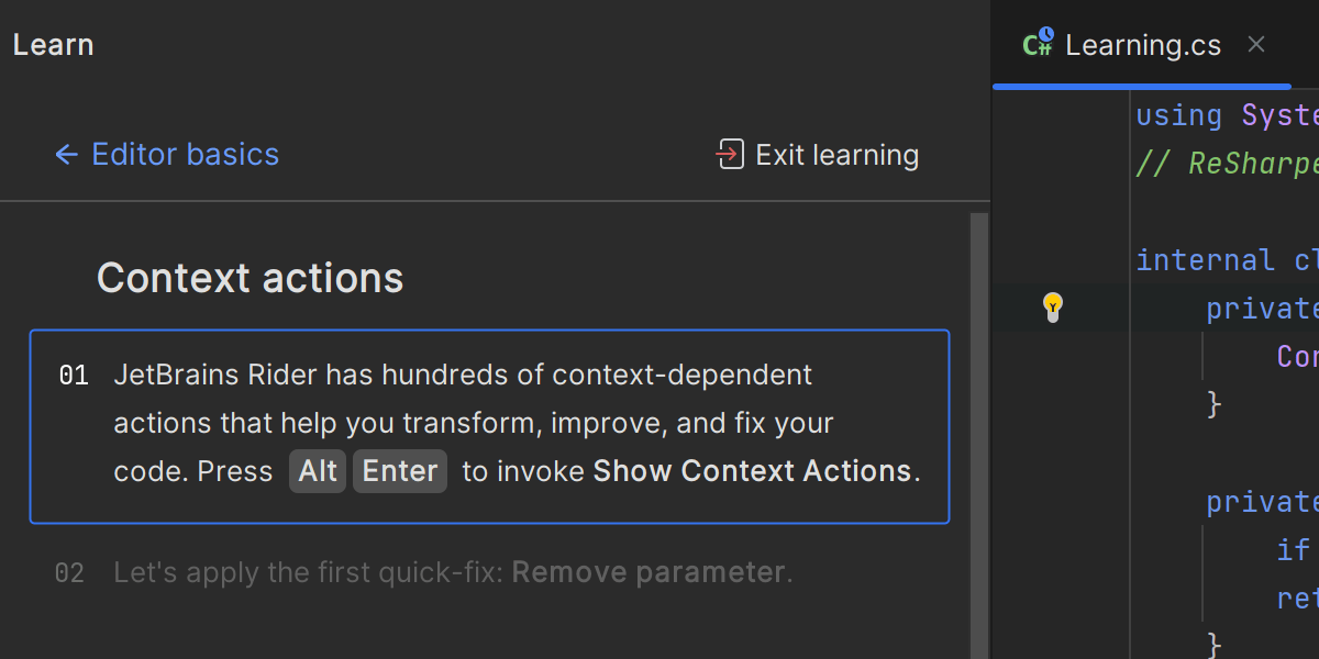 另外,Qodana 现已结束预览阶段。 查看这篇博文详细了解新版本,并获取在 Rider 中利用 Qodana 的说明。