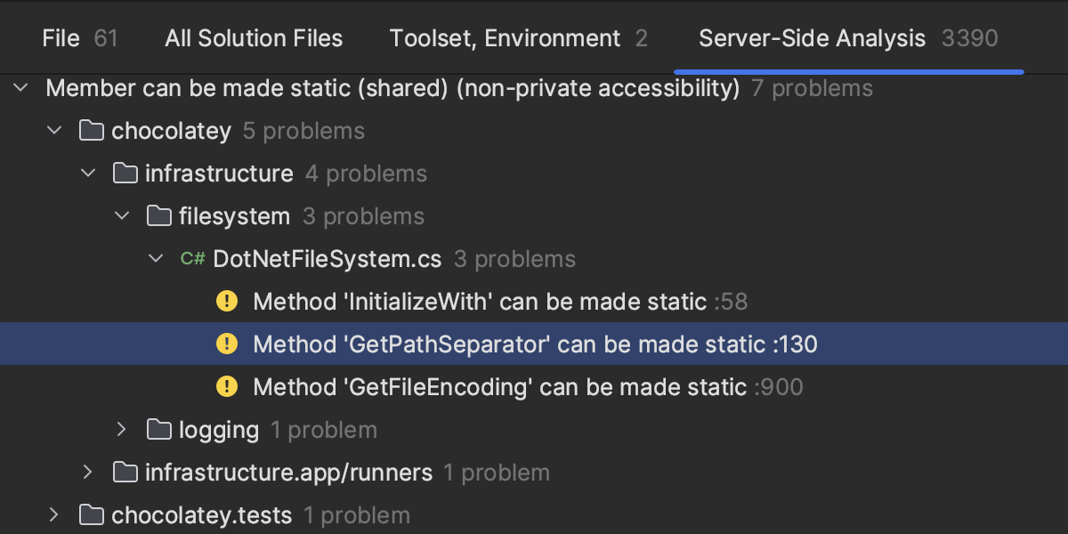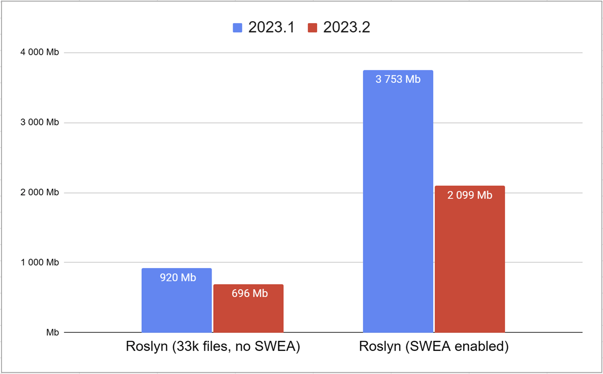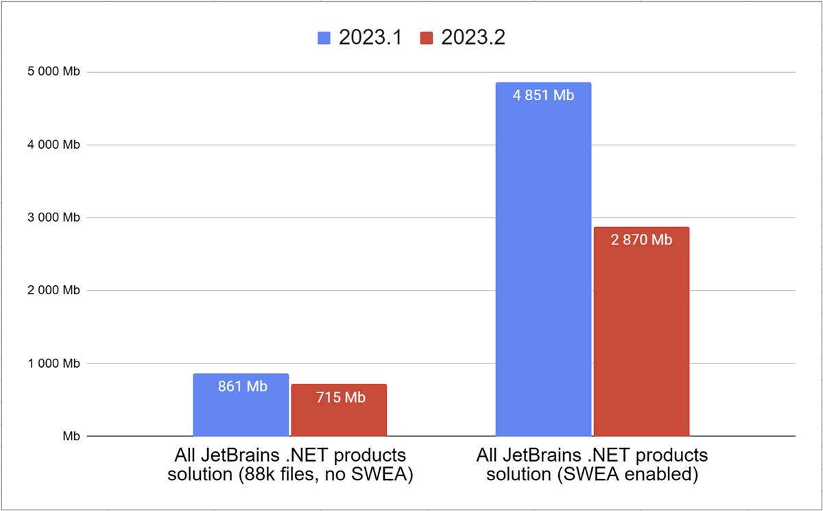在 Rider 2023.2 中,我们修改了缓存 IDE 系统运行所需数据的方法。 此修订已获得无数性能测试的支持,将显著减少每个打开的解决方案的磁盘空间消耗。 在实际中,这意味着减少花费在磁盘输入/输出上的总体时间,缩短解决方案的加载时间。