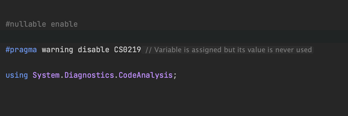 代码分析的 C# 弃元支持获得了一系列实用改进: