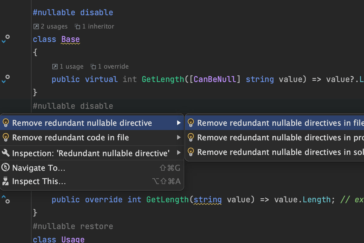 JetBrains.Annotations 特性相矛盾的检查。 要详细了解这些检查,请阅读此博文。
