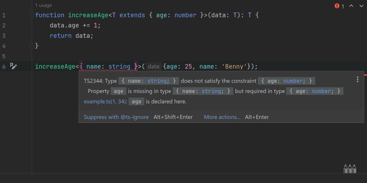 我们在 Rider 2023.2 中关注如何改进呈现 JavaScript 和 TypeScript 中类型错误的方式。 现在,您的错误和警告将以可读性更高的方式格式化,使代码中的问题更易发现。 这适用于所有 TypeScript 和一些最常见的 JavaScript 错误。 另外,它还可以处理本地化后的错误!