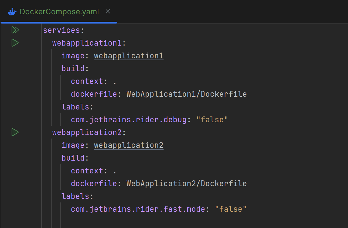 例如,如果您想为部分服务禁用快速模式,您可以为其设置 com.jetbrains.rider.fast.mode: "false" 标签。 如果您想禁用调试模式,请使用标签 com.jetbrains.rider.debug: "false"。