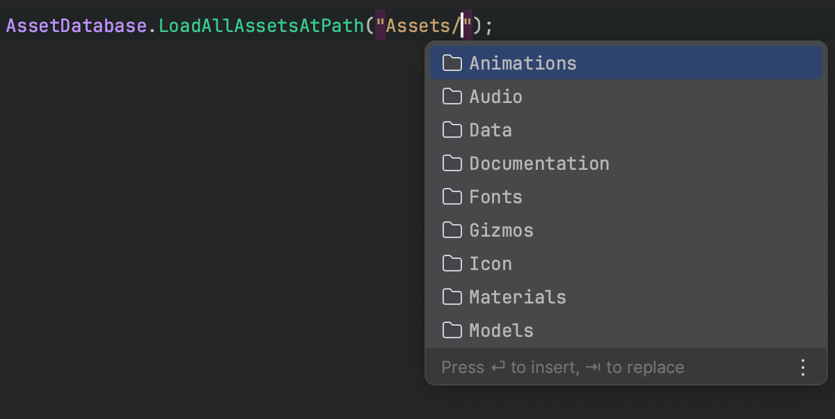 我们还为资源数据库 API 中使用的路径添加了补全。 开始输入后,Rider 就会从项目建议路径。