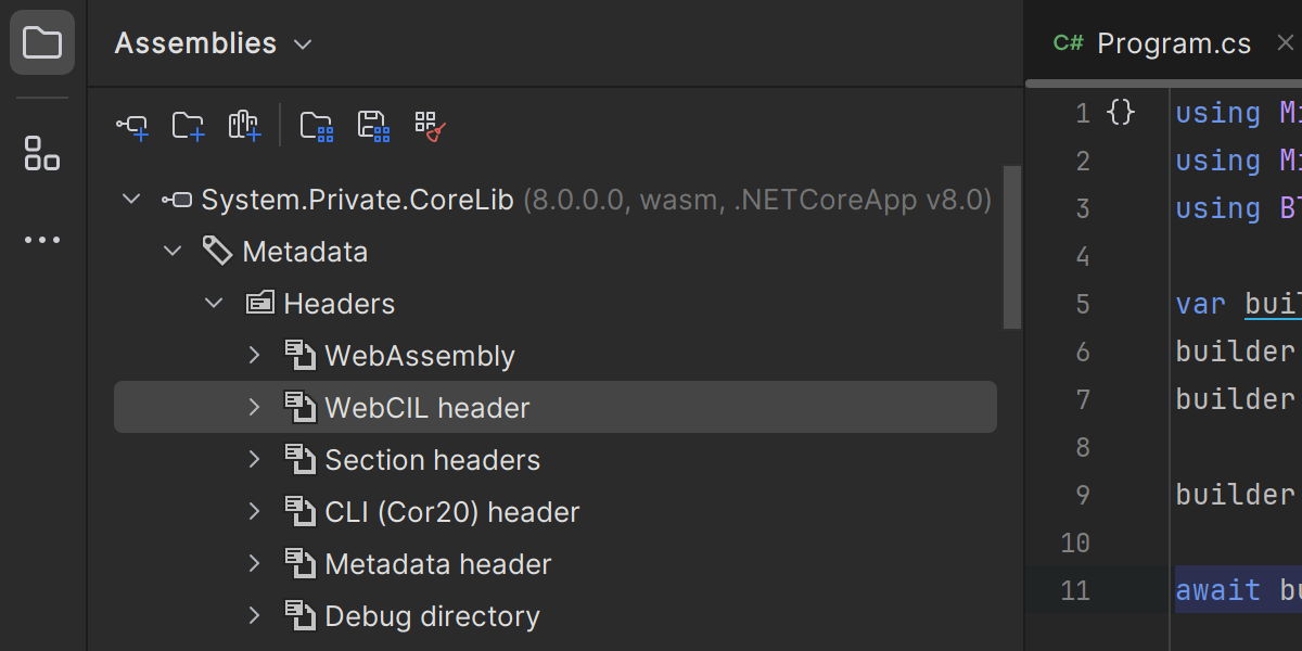 Rider 内的 Assembly Explorer 现已支持 WebAssemblies 的 WebCIL 打包格式。
