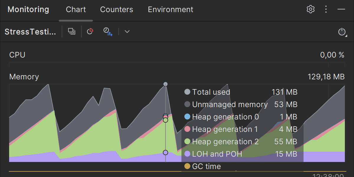 Rider 2024.1 引入了 Monitoring(监测)工具窗口,可让您在运行或调试时监测 .NET 应用程序的性能并在后台收集关键指标。
