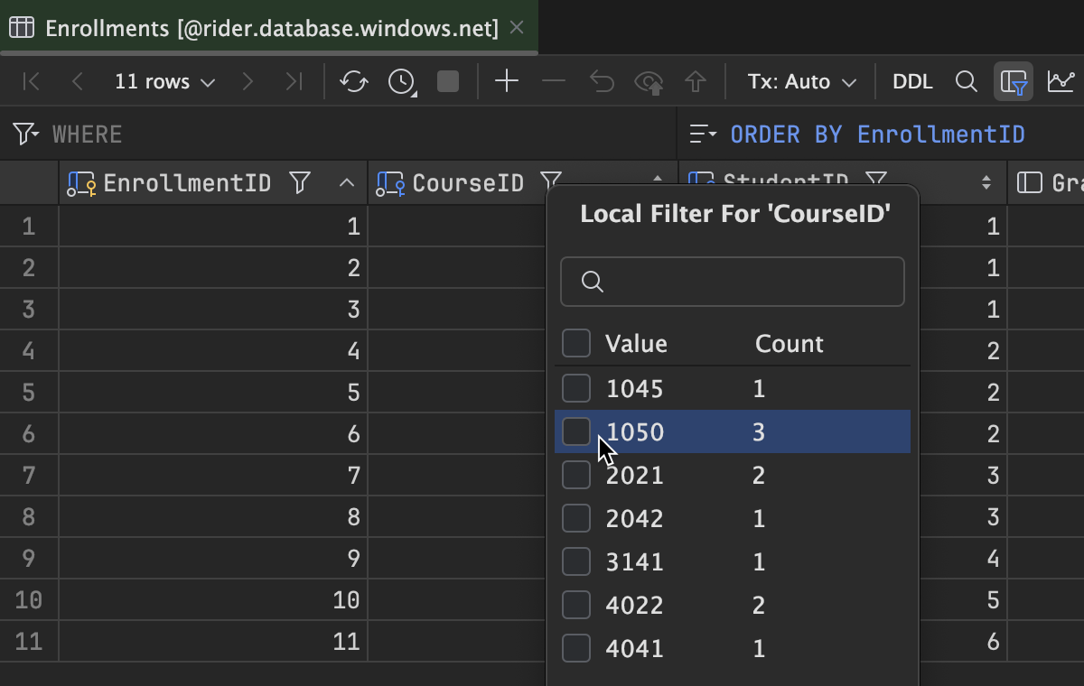 Rider 2024.1 数据库处理方面的最显著改进包括: