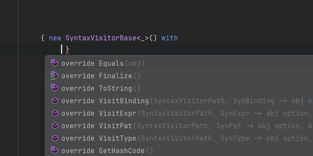 现在,可以通过针对缺失成员的新快速修复、代码补全和 Generate(生成)重构在对象表达式中生成重写。